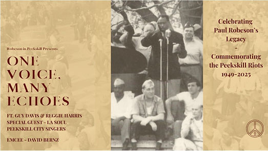 Our 2025 annual event, entitled One Voice, Many Echoes presented nationally acclaimed artist-activists alongside local voices all of whom follow in Robeson’s footsteps today. The concert gave special recognition to Pete Seeger (who opened Robeson’s concert in 1949)